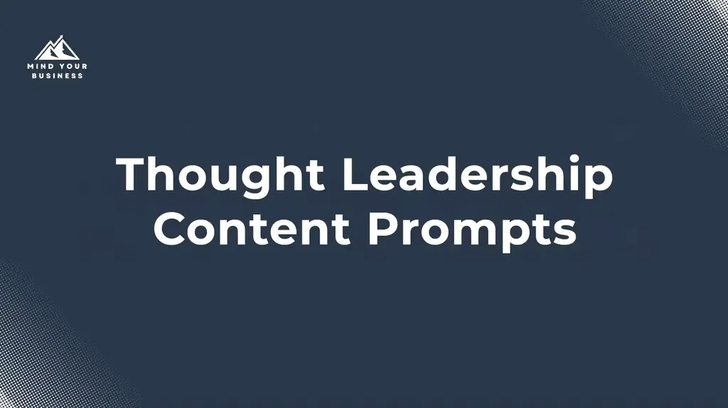 Een bibliotheek van 40+ thought leadership prompts, opgebouwd rond vaste formats zoals misvattingen, trends, praktijklessen en visie.